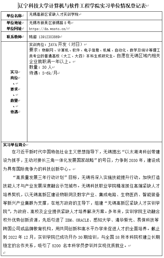 无锡高新区紧缺人才实训学院招聘信息