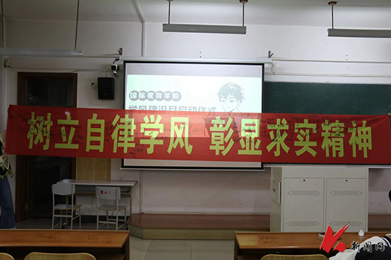 活动开始,由辅导员向全体同学宣读倡议书,激发全体同学对学习专业知识的热情,在“比学赶超”的氛围中努力学习。2021级和2022级专业排名第一的同学为大一新生进行学习经验的交流分享,优良学风班级的班长与同学们交流班级的管理经验,优秀学风寝室长分享如何营造寝室优良寝风。宣讲完毕后,由学习部组织同学们在学风建设承诺条幅上签字。本次“学风建设月”系列活动包括:“榜样力量”系列推文、“最美笔记大赛” 评选活动、“记忆力大比拼”英语词汇听写、“远离手机”每日打卡活动、“英语脱口秀”演讲等系列活动。同时,针对大一新生开展“自习室那些事”主题学风建设活动。