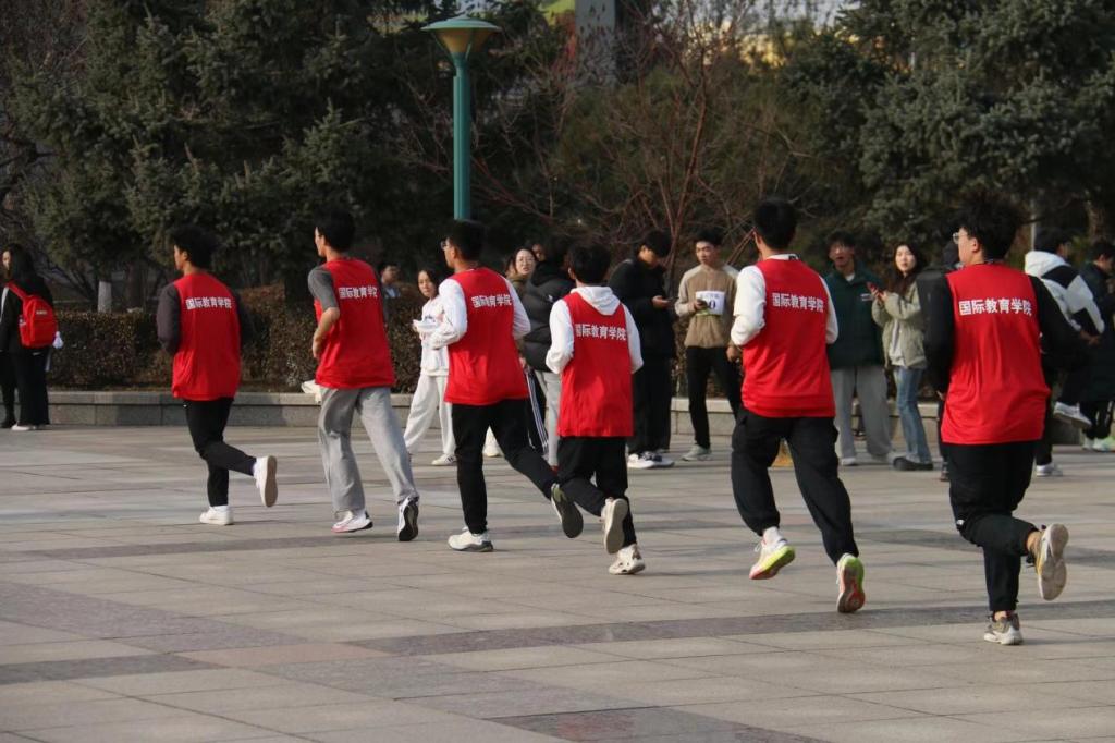 12月8日,开元平台在博雅广场开展一二·九长跑接力赛,国际教育学院运动员积极参与。