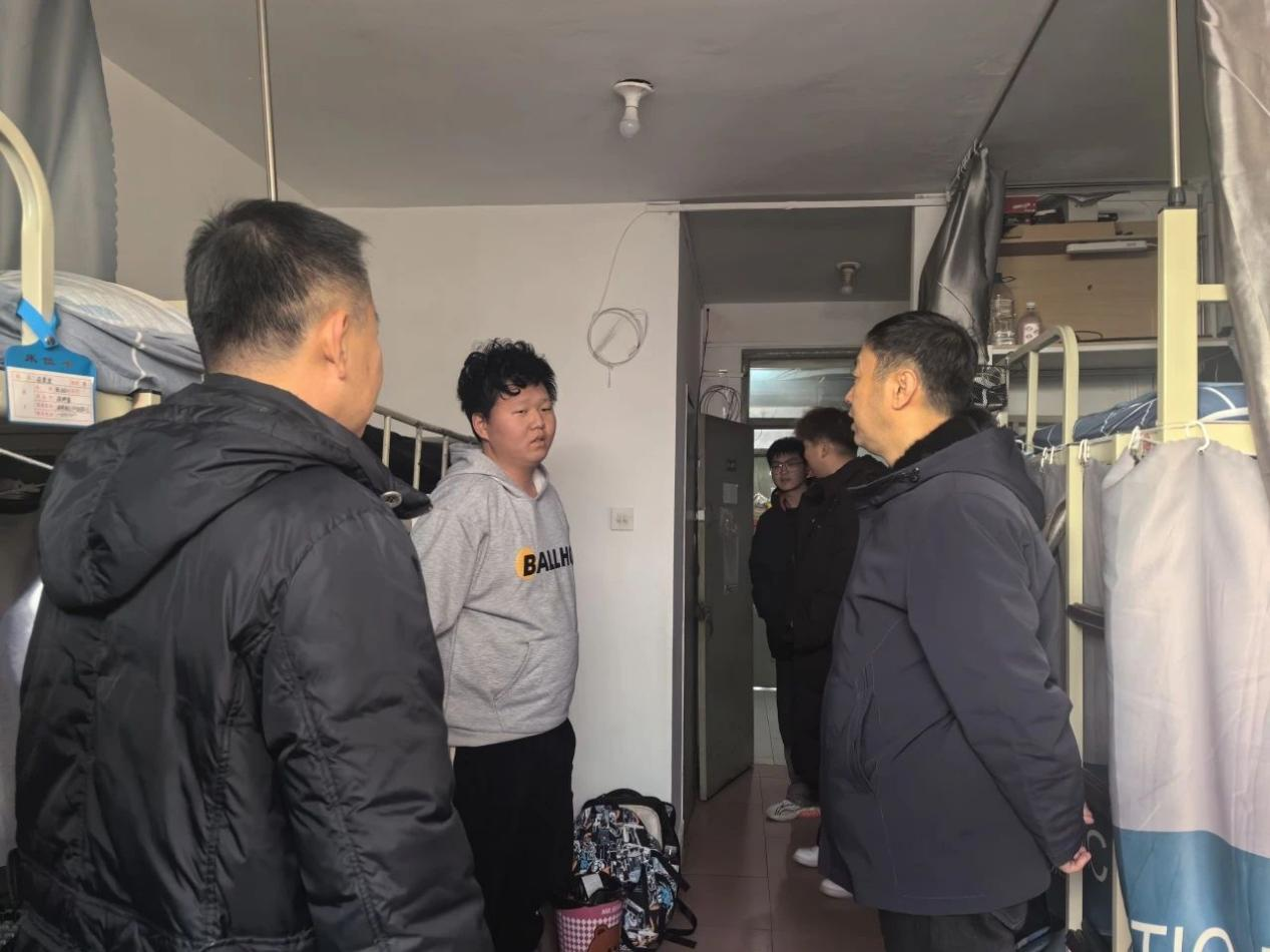 在走访中学院领导检查了学生寝室卫生和用电安全,并与同学们亲切交流,询问他们在校学习生活情况,叮嘱同学们在校期间要遵守学校规定,安排好学习和生活,寒假放假离校返乡时要合理选择返程方式,返程途中注意交通安全、人身安全,与家人和学校保持畅通联系,离校前整理好寝室物品,切断电源,保管好贵重物品。