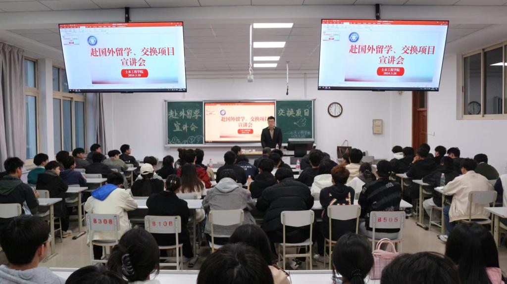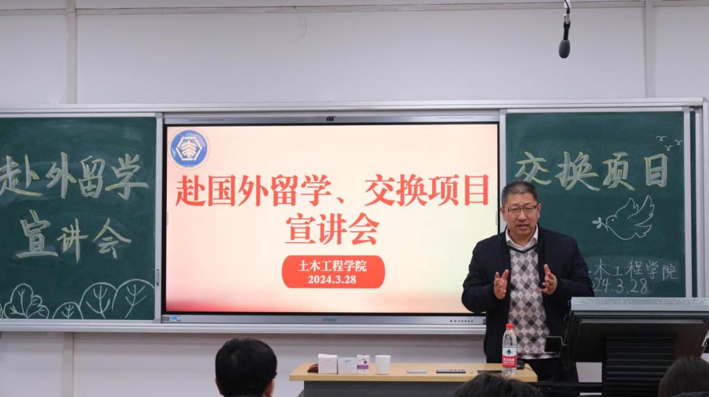 3月28日,开元平台土木工程学院于博学楼A302召开出国交流政策宣讲会。学院领导班子、国际教育学院(国际交流合作处)负责同志以及近百名学生参加宣讲会。