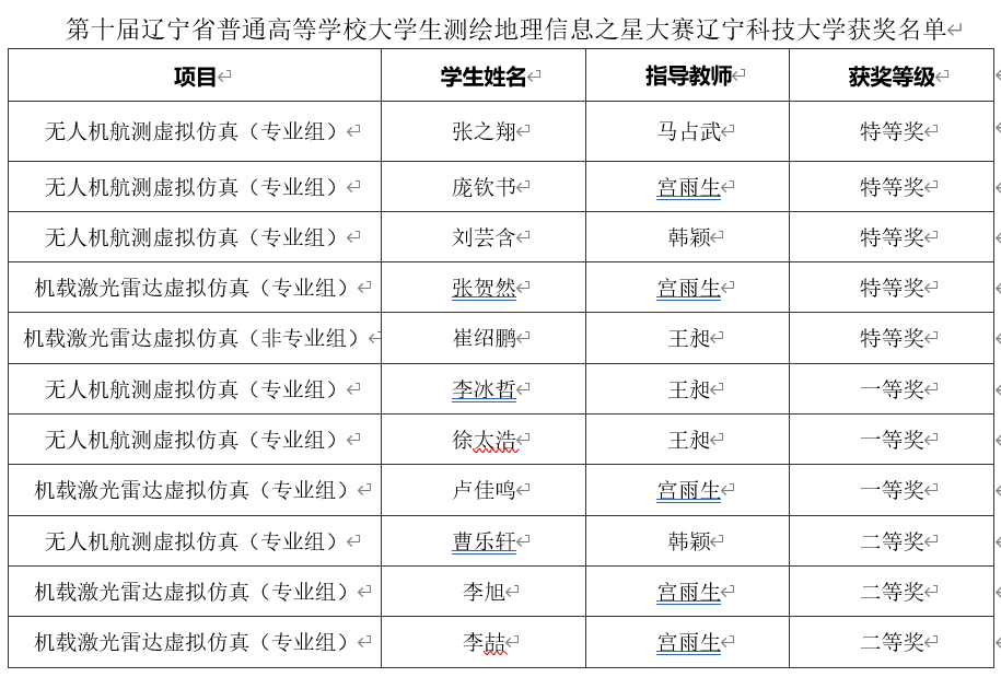 第十届辽宁省普通高等学校大学生测绘地理信息之星大赛开元平台获奖名单