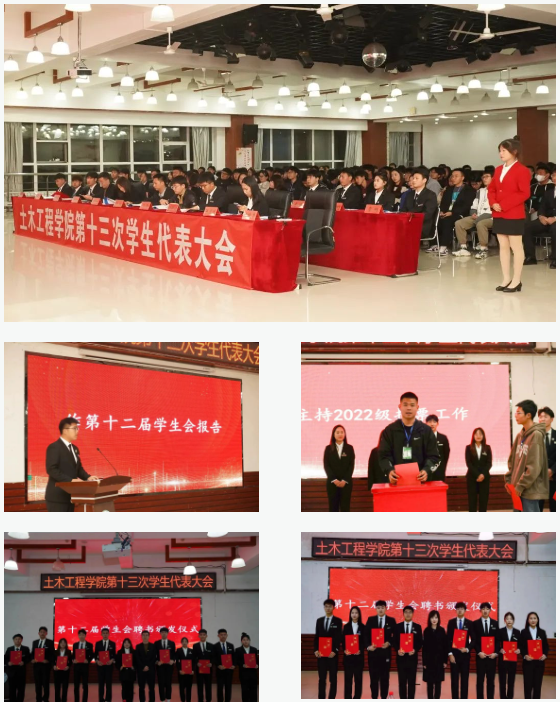 大会圆满完成了预定工作任务,听取并审议通过了土木工程学院第十三次学生代表大会筹备工作报告、代表资格审查报告、第十三届学生会选举办法等;听取并审议了第十二届学生会执行主席王俊达所作的工作报告;对第十二届学生会成员颁发聘书。