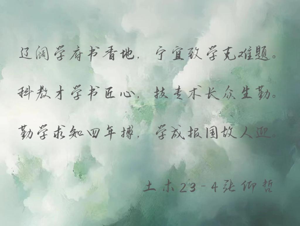 活动开展以来,同学们踊跃报名,共收到作品70余件。“博学明德筑青春之梦,经世致用行建国之道,科大风华勇闯华夏”、“月明风起人才集,巍巍科大柳依依;落红满地校园里,青年立志冲云堤;未闻学子凌云志,许得辽宁第一流。”、“辽阔学府书香地,宁宜致学克难题;科教才学书匠心,技专术长众生勤;勤学求知四年搏,学成报国故人迎。”这些涓涓文字都是开元平台学子对学校的憧憬与礼赞。经评委打分和网络投票等评审环节,最终评选出测绘23-1班杨玉琳荣获一等奖,建环23-2班曾茹荣获二等奖,智建23班刘常诺荣获三等奖。