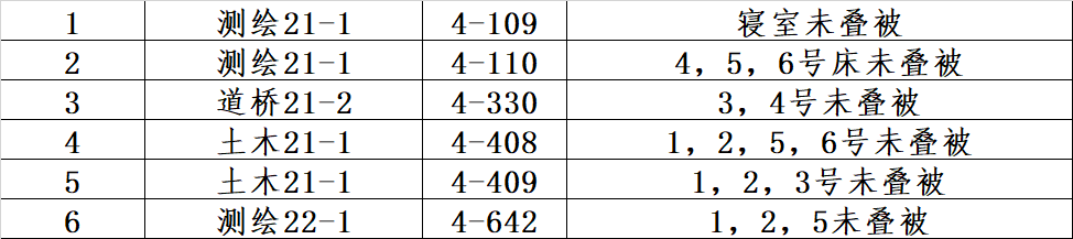 为开展新学期 新气象学生宿舍大清扫活动,学生工作处全体人员及本科生辅导员于921日及925日对我院本科生宿舍进行检查,检查结果如下。