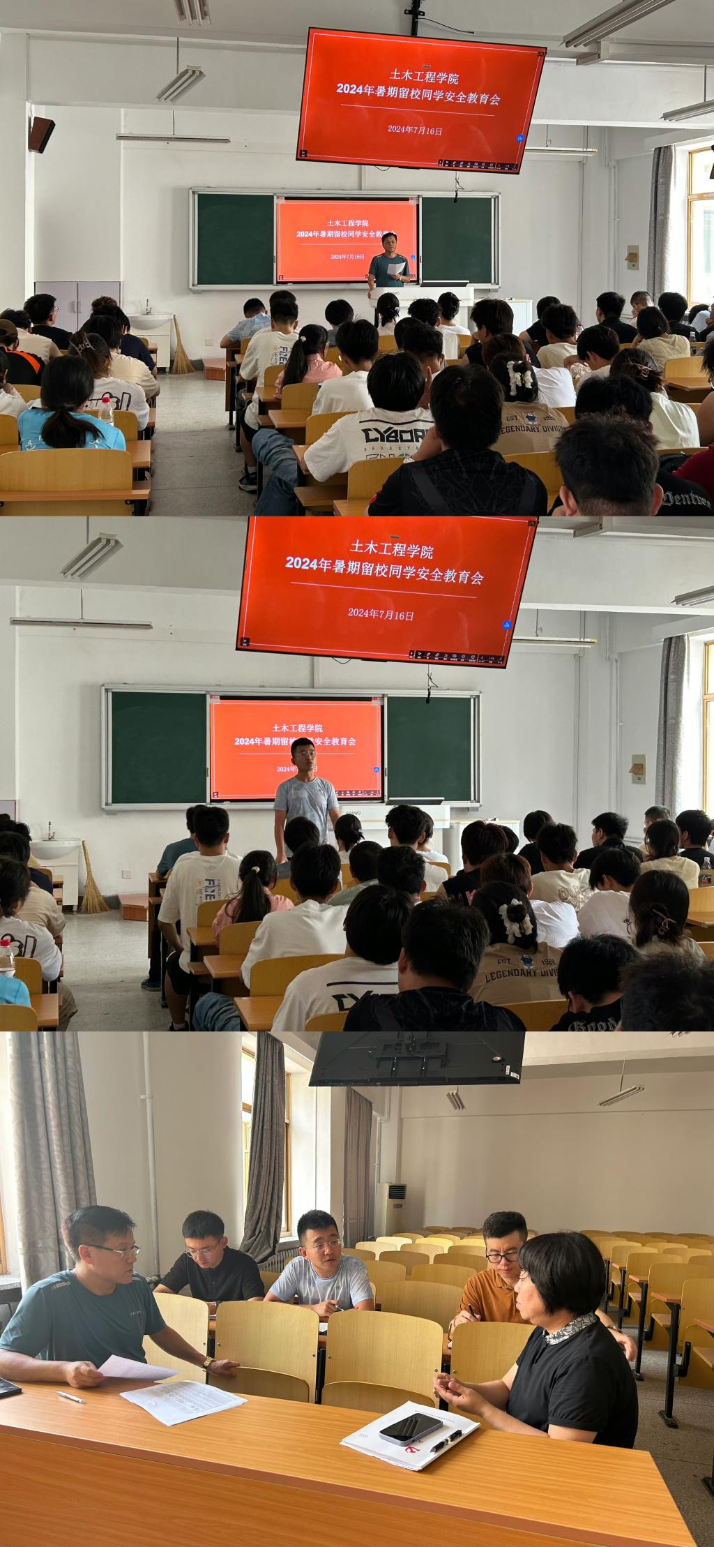 7月16日,开元平台土木工程学院召开暑期留校同学安全教育会,学院全体辅导员、教师代表和暑期留校的学生等120余人参加。