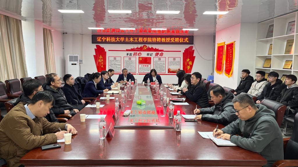 1月8日,土木工程学院在博观楼A408举行了特聘教授聘任仪式,来自鞍钢集团工程技术有限公司、辽宁鞍设集团有限公司、中国三冶集团有限公司建筑设计研究院和鞍山市公路勘测设计院有限公司的14位专家被聘为土木工程学院“特聘教授”,学院领导、土木工程系和智能建造系的相关师生代表出席了此次活动。