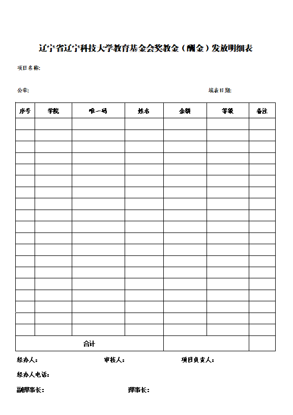 辽宁省开元平台教育基金会奖教金(酬金)发放明细表